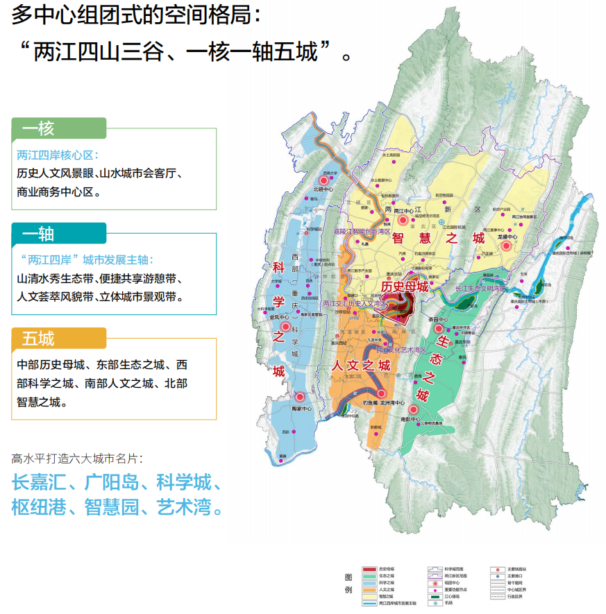 重庆:“一核一轴五城”的全新空间格局出炉,强化了两江四岸核心区的重要性。