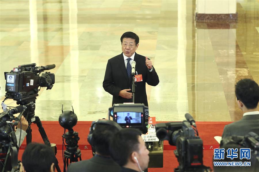 3月12日,十三届全国人大二次会议在北京人民大会堂举行第三次全体会议。这是国家林业和草原局局长张建龙在“部长通道”接受采访。 新华社记者殷刚摄